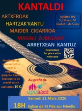 L'APEL St Joseph Arretxea organise son premier Kantaldi en l'église de Saint-Pée-sur-Nivelle le samedi 21 mars 2026 à 18h.