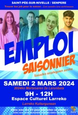 La commune de Saint-Pée-sur-Nivelle organise une bourse à l’emploi saisonnier le samedi 2 mars de 9h à 12h à l’espace culturel Larreko.