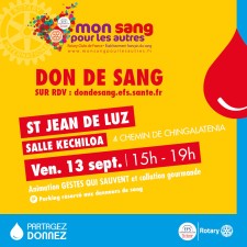 Prochaine collecte de sang : vendredi 13 septembre de 15h à 19h à Saint-Jean-de-Luz.