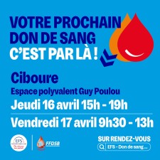 L'Etablissement Français du Sang (EFS) organise une collecte de sang qui se déroulera à Ciboure :
