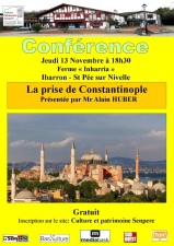 L'association Culture et Patrimoine Senpere organise une conférence gratuite le jeudi 13 novembre 2025 à 18h30 à la ferme Inharria, quartier Ibarron sur la prise de Constantinople présenté par M. Alain HUBER.