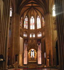 La cathédrale Sainte-Marie de Bayonne telle que nous la voyons aujourd’hui, est un chantier quasi permanent depuis le XIXe siècle. Emile Boeswilwald, architecte des bâtiments de France, a suivi les consignes des divers évêques de Bayonne afin de restaurer un édifice que la Révolution française et les périodes troubles qui s’ensuivirent avaient laissé en mauvais état. Mais il faut remonter au Moyen-Âge pour entendre les ordres des chefs de chantiers résonner dans une nef qui sort à peine d’un incendie meurtrier, donnant l’aubaine d’une première reconstruction sur les ruines calcinées d’un édifice roman initial.
