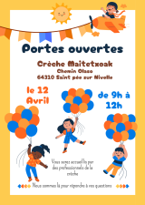 Samedi 12 avril 2025 la crèche MAITETXOAK à Saint-Pée-sur-Nivelle organise une matinée "portes ouvertes" de 9h à 12h.