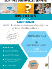 À cette occasion, Julien Etchevers, notaire, interviendra pour parler de ses expériences et de son rôle lors d’une succession ainsi que du cadre légal. L’établissement public foncier local Pays Basque (EPFL) présentera le viager solidaire du Pays-Basque qui permet d'assurer une véritable sérénité matérielle et financière aux personnes âgées en les maintenant le plus longtemps à domicile et l’association Etxalde parlera de l’accès au logement et au loyer solidaire pour tous en développant la thématique sur la propriété sous la forme d'un bien commun, c'est-à-dire la nue-propriété du bien et l'usufruit.