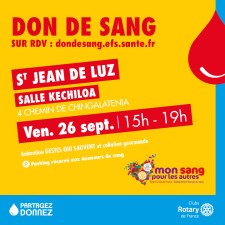 L'Etablissement Français du Sang (EFS) organise une collecte de sang qui se déroulera :