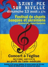 La Fondation Misja Medyczna qui œuvre depuis 11 ans en Ukraine organise un festival de chants basques avec Bost Axola taldea, Bercaits Anaiak, Menditarrak et ukrainiens avec Maria Andreievay, Uliia Abdurashytova, Denys Cavo, Marina Prepotenska, Pauline Laurent ( violoniste).