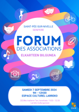 Le forum des associations se tiendra le samedi 7 septembre 2024 de 9h à 12h30 à l'espace culturel Larreko.