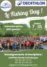 L’association AAPPME Côte basque en partenariat avec décathlon Anglet vous proposent une animation pêche pour les enfants 100% gratuite le samedi 7 juin de 14h à 17h30 aux étangs du lac de Saint-Pée.