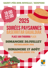 La commune de Saint-Pée-sur-Nivelle organise pour la quatrième année consécutive les soirées paysannes. Cette année, elles auront lieu les dimanches 20 juillet et 17 août, devant l’espace culturel Larreko, place Xan Ithourria, de 18h à 22h.