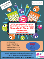 L' APEL St Joseph Arretxea organise son loto le 23 février 2025 à la ferme Inharria.