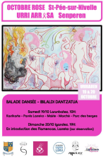Dans l’objectif de sensibiliser davantage le grand public au dépistage, à la prévention et à la lutte contre les cancers, plusieurs structures associatives de Saint-Pée-sur-Nivelle se sont associées pour former le groupe Sor/Egin. Des membres issus de la Compagnie Elirale-Pantxika Telleria, du groupe de danse Zirikolatz, Nesk à paillettes, Goxaleku, le pôle Seniors Karrikarte, Cap women organisation et d’autres volontés citoyennes se sont unis et réunis pour créer un événement public les samedi 19 et dimanche 20 octobre, et ce, avec le soutien de la mairie de Saint-Pée-sur-Nivelle .