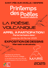 Adulte, enfant, en solo, en duo ou en association, contribuez à l’exposition dédiée au Printemps des Poètes, qui sera visible tout le mois de mars à l’espace culturel Larreko !