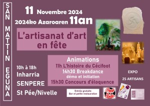 Participez à la 9ème édition de l'Artisanat d'art en Fête, le lundi 11 novembre 2024, de 10h à 18h, à la ferme Inharria.