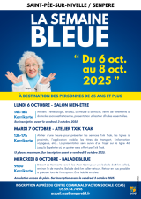 Le Centre Communal d'Action Sociale, à travers son club senior, organise la semaine bleue du 6 au 8 octobre 2025. Ces animations sont accessibles aux personnes de 65 ans et plus.